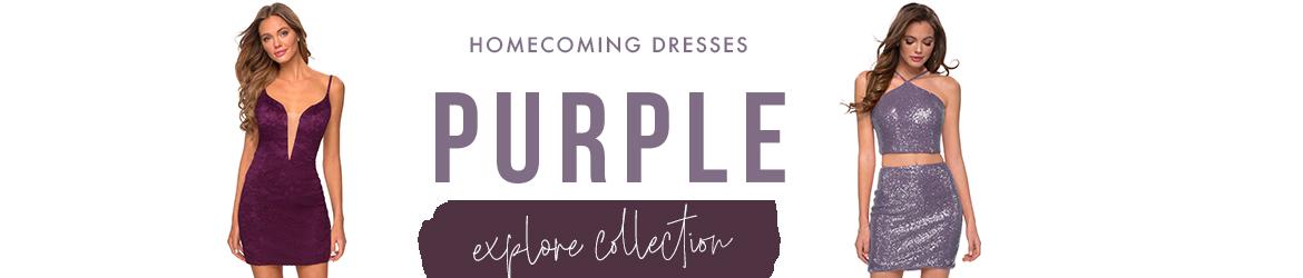 Find your perfect purple homecoming dress from La Femme! In this range, explore purple dresses in varying hues including lavender, plum, eggplant, and dark purple shades. This color of royalty, luxury, and power is an easy color to wear no matter what look you are going for. If you’re shopping for a sweet look for your next dance or event, try a soft lavender short dress with subtle beaded accents. To make a real statement, opt for a dark purple homecoming dress that is form fitting and complete with an intricate strappy back. With so many trendy options available in this rich and regal color, the sky is truly the limit!