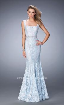 Stunning lace gown with keyhole back and contrast lining. The bodice is embellished with crystal beading. Back zipper closure.