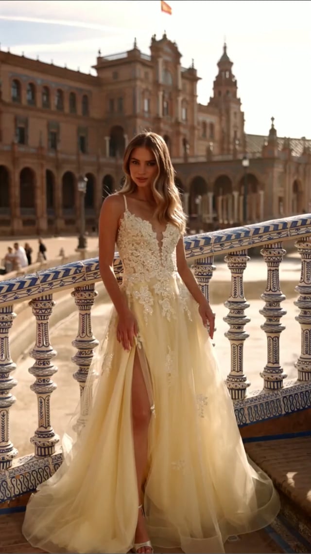 This dreamy A-line gown features a plunging neckline adorned with intricate floral beading and embroidery. The flowing tulle skirt includes a high slit for added movement and allure, while the crisscross lace-up back completes the romantic look. Dress comes in slate under number 31472. Dress comes in dark berry, dusty mauve, lilac mist, and sage under number 30560.