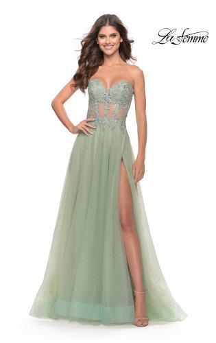 Prom Dress with Rhinestone Sheer Bodice and Asymmetrical Skirt